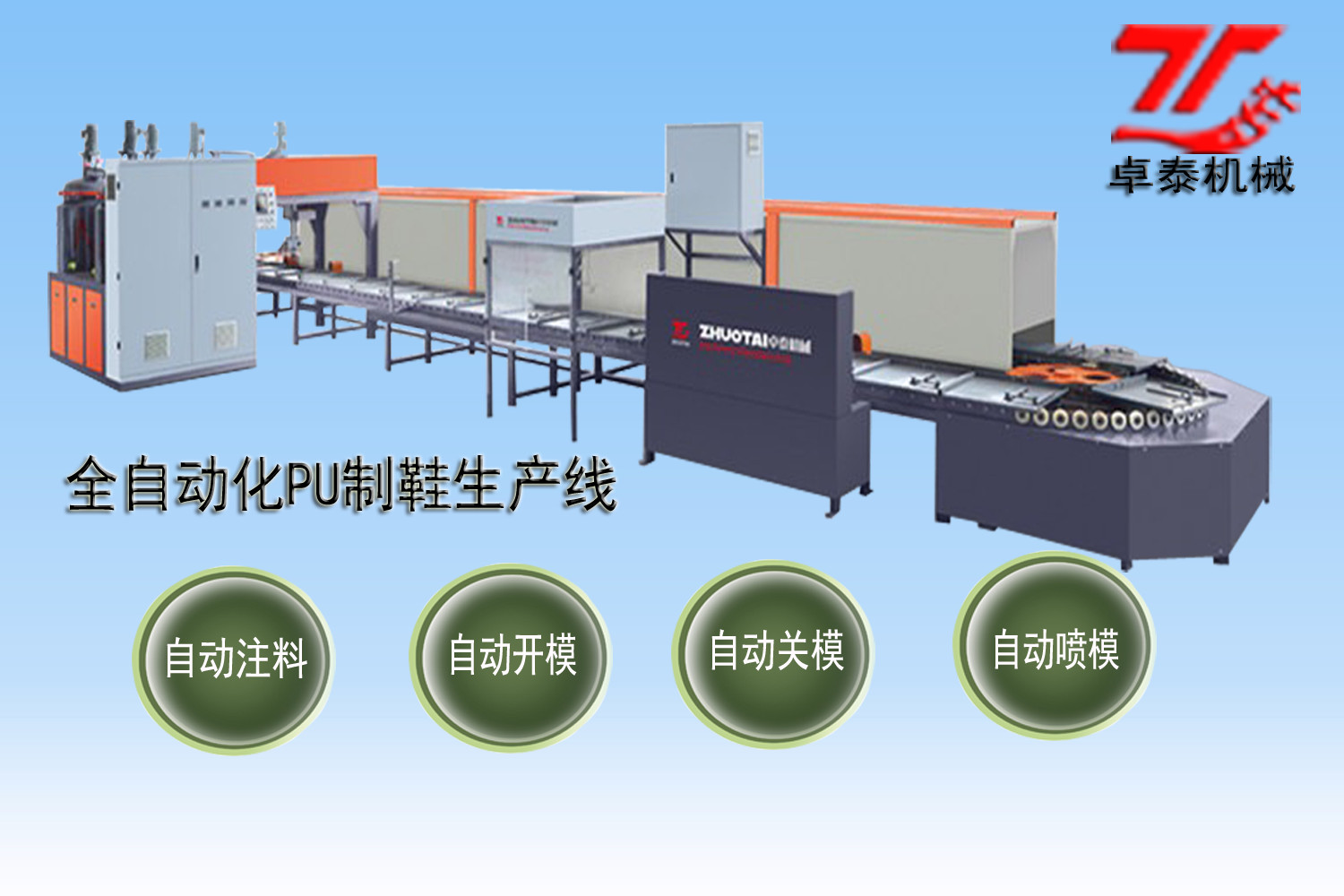 全自動化生產線整機 全自動PU制鞋生產線 全自動PU鞋機生產線 ZTZD883全自動智能(PU)連幫鞋生產設備 聚氨酯原液烘箱 ZTZD807自動開模機 ZTZD806自動關模機 ZTZD805自動噴模機 ZTZD830自動注料主機 ZT903吊臂式PU澆注機 ZD913龍門式PU澆注機 雙色雙密度PU澆注機主機 新款三組份密封條澆注機 二組份全自動三維密封條澆注機 全自動方圓密封條澆注機 輪胎發泡機 精密聚氨酯軟泡發泡機 數控型聚氨酯高壓發泡機 硬質發泡機 試驗機 集成加熱高溫加色彈性體澆注機 全自動化中溫彈性體加色澆注機(電熱式)MDI 三組份彈性體澆注機 全自動化中溫加色彈性體澆注機(油加式)